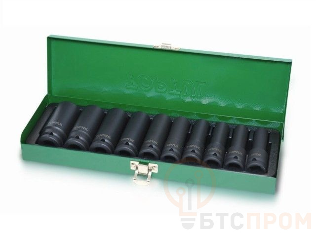 Набор головок ударных 1/2" TOPTUL включает в себя 10 глубоких шестигранных головок (10 - 24 мм), изготовленных из хром молибденового сплава, с динамическим профилем. Материал головок хром-молибден (CrMo) придает им дополнительную прочность при работе с пневмоинструментом. Рекомендуется для профессионального использования. Размеры металлического кейса: 313х111х38 мм.