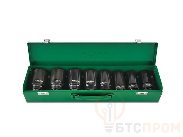 Набор головок ударных 3/4" TOPTUL включает в себя 8 глубоких шестигранных головок (22 - 38 мм), изготовленных из хром молибденового сплава, с динамическим профилем. Рекомендуется для профессионального использования. Размеры металлического кейса: 430х103х70 мм.