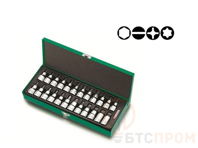 Шестигранные - 4, 5, 6, 8, 10, 12 мм; Шлицевые - 8, 10, 12, 14, 16 мм; С крестообразным шлицем - PH2, PH3, PH4; Torx - T20, T25, T27, T30, T40, T45, T50, T55, T60.