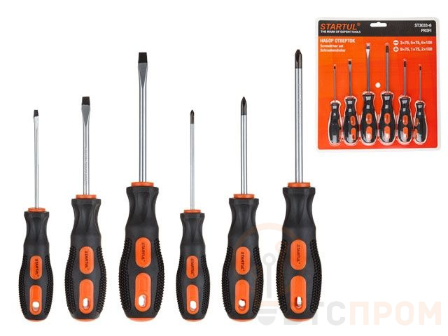Набор отверток 6шт STARTUL PROFI (ST3033-6) (SL3х75,5х75,6х100 PH0х75,1х75,2х100 рукоятка Anti slip) ST3033-6