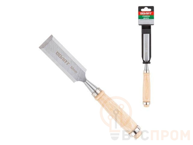 Стамеска плоская 32мм ВОЛАТ (деревянная рукоятка, металлическое кольцо) 15050-32 фото в каталоге от BTSprom.by