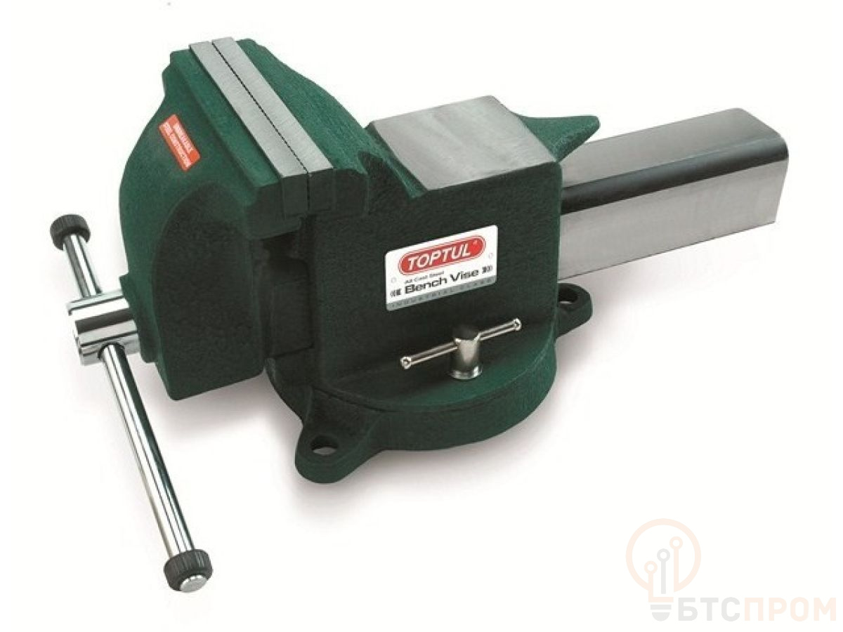 Наличие поворотного механизма делает возможным поворот на 360 градусов. Тиски оснащены удобной наковальней и практичным захватом для труб.