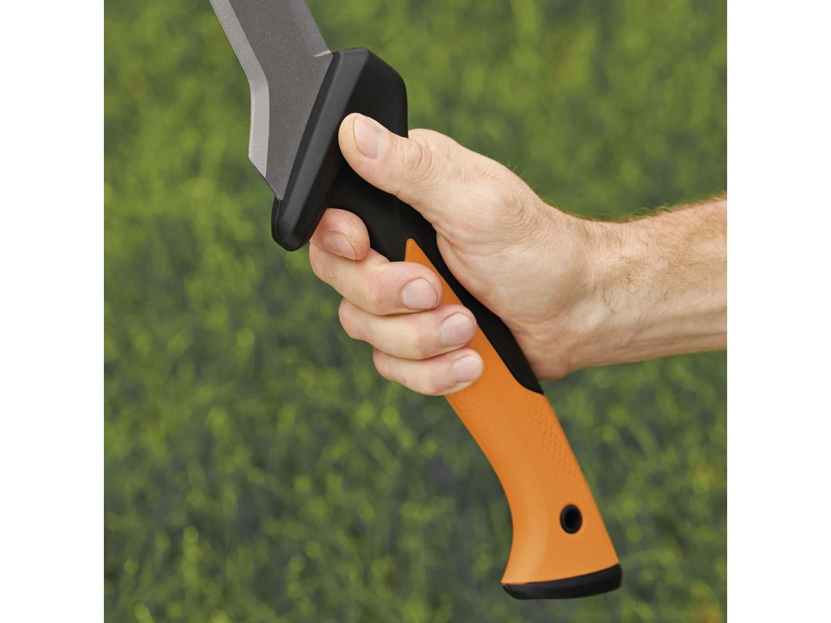 Для заточки подходят точилки для топоров Fiskars: арт. 1026797, арт. 1000601