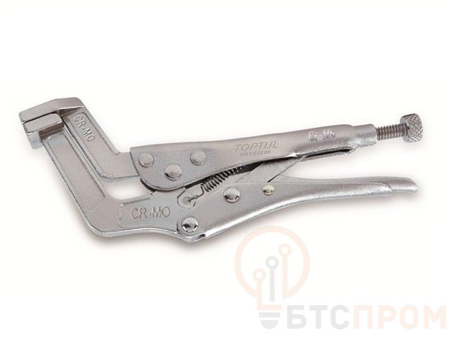 Зажим-струбцина с изогнутыми губками TOPTUL изготовлен из высококачественной стали и имеет насечки на захватывающей поверхности, исключающие соскальзывание инструмента. Зажим оснащен механизмом регулировки ширины захвата и фиксатором. Рекомендуется для профессионального использования.