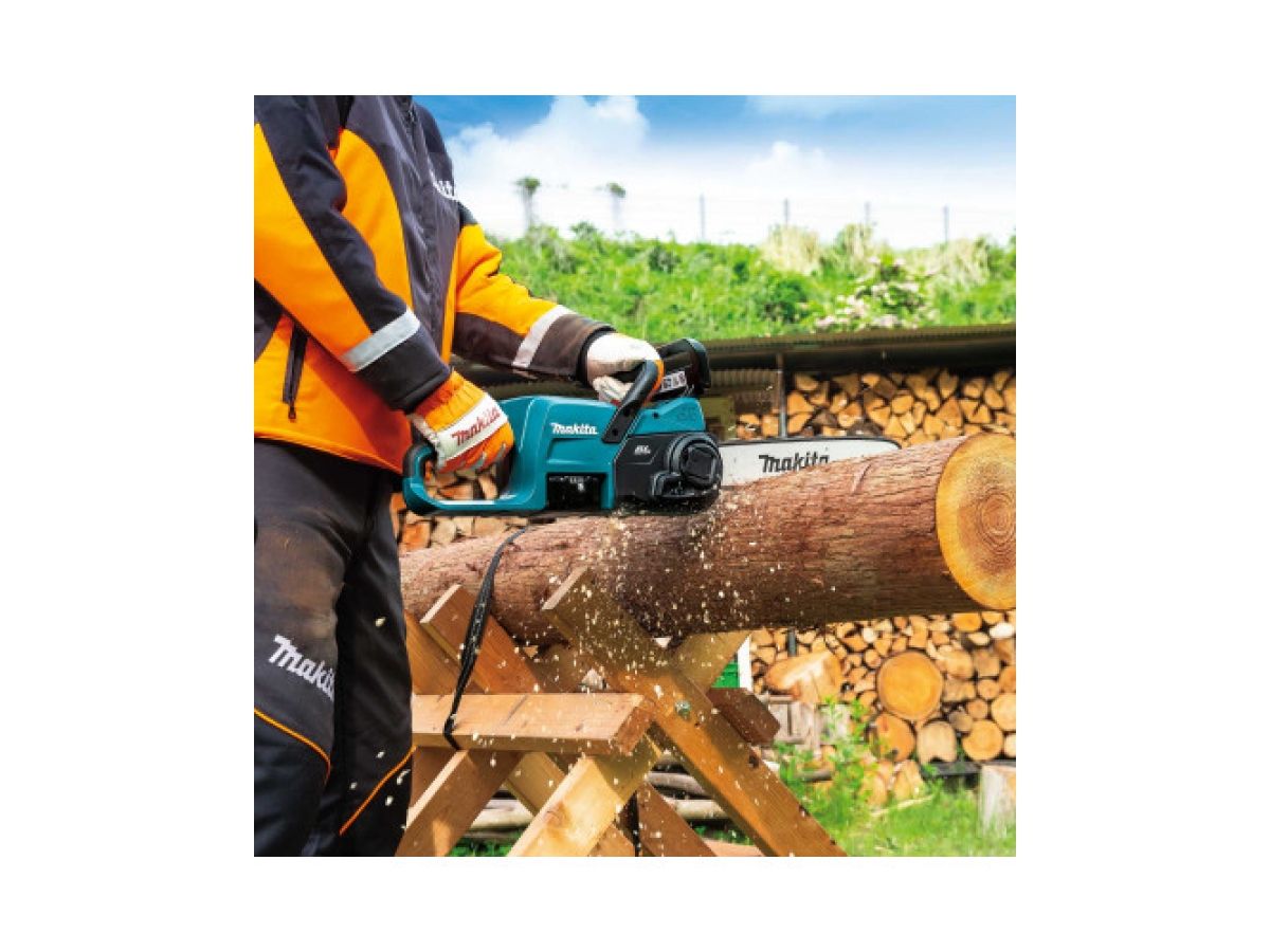 легкая и компактная аккумуляторная цепная пила, обладающая высокоэффективным бесщеточным двигателем с редуктором и низким уровнем шума для максимально комфортной работы. Пригодится как профессиональным садоводам, так и бытовым пользователям, которым компактность и легкость инструмента для продолжительного времени важнее его мощности. Хотя мощности данной пилы достаточно, чтобы свободно резать бревна диаметром до 25-30 см. За счет редуктора скорость цепи уменьшена до 7.7 м/с, но крутящий момент значительно увеличен. Пила работает от одного универсального LXT аккумулятора с напряжением 18 В.