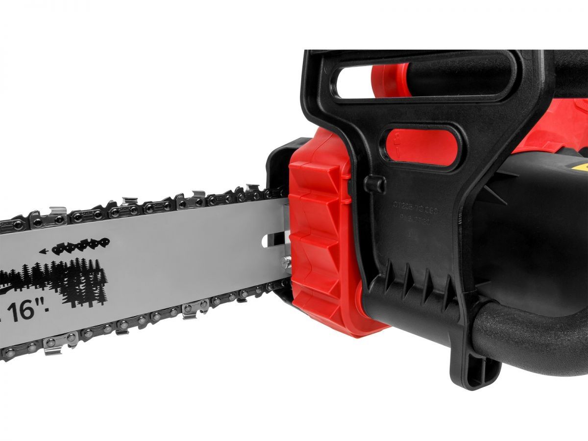 Пила оснащена тормозом выбега цепи: при отпускании клавиши управления мгновенно останавливается цепь, что обеспечивает наибольшую безопасность.