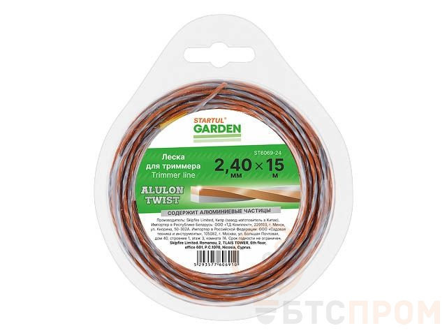 Леска ф 2.4 мм х 15 м витой квадрат сеч. ALULON TWIST STARTUL GARDEN (содержит алюминиевые частицы) ST6069-24