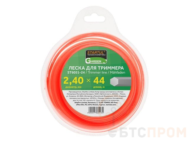 Описание: леска триммерная является режущим элементом и заправляется в триммерную головку; яркий цвет лески хорошо виден в любых погодных условиях, в плотном покрове травы и в условиях сниженной освещённости; с помощью острых углов, которые присутствуют в сечении, удается организовать более эффективный срез растительности;
