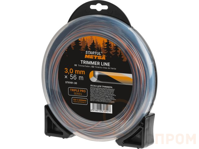 Трехкомпонентная леска, средний слой которой усилен высокопрочным углеродным волокном, что делает ее особенно износостойкой, долговечной, а <скрученная форма> обеспечивает снижение уровня шума и высокую производительность кошения