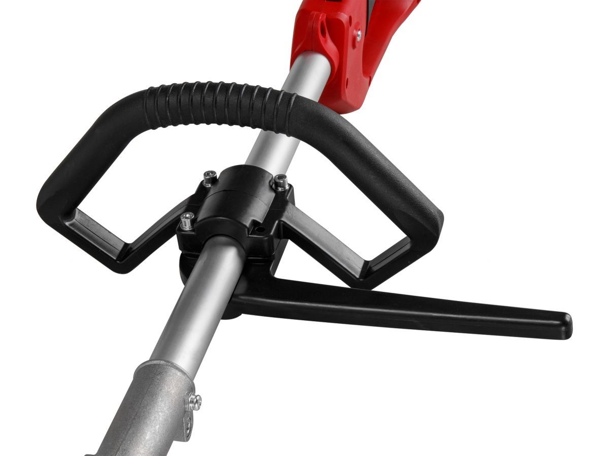 Инструмент оснащен мощным двигателем, эргономичной прорезиненной дополнительной рукояткой, которая может устанавливаться в любом удобном положении, разборной штангой для компактного хранения.
