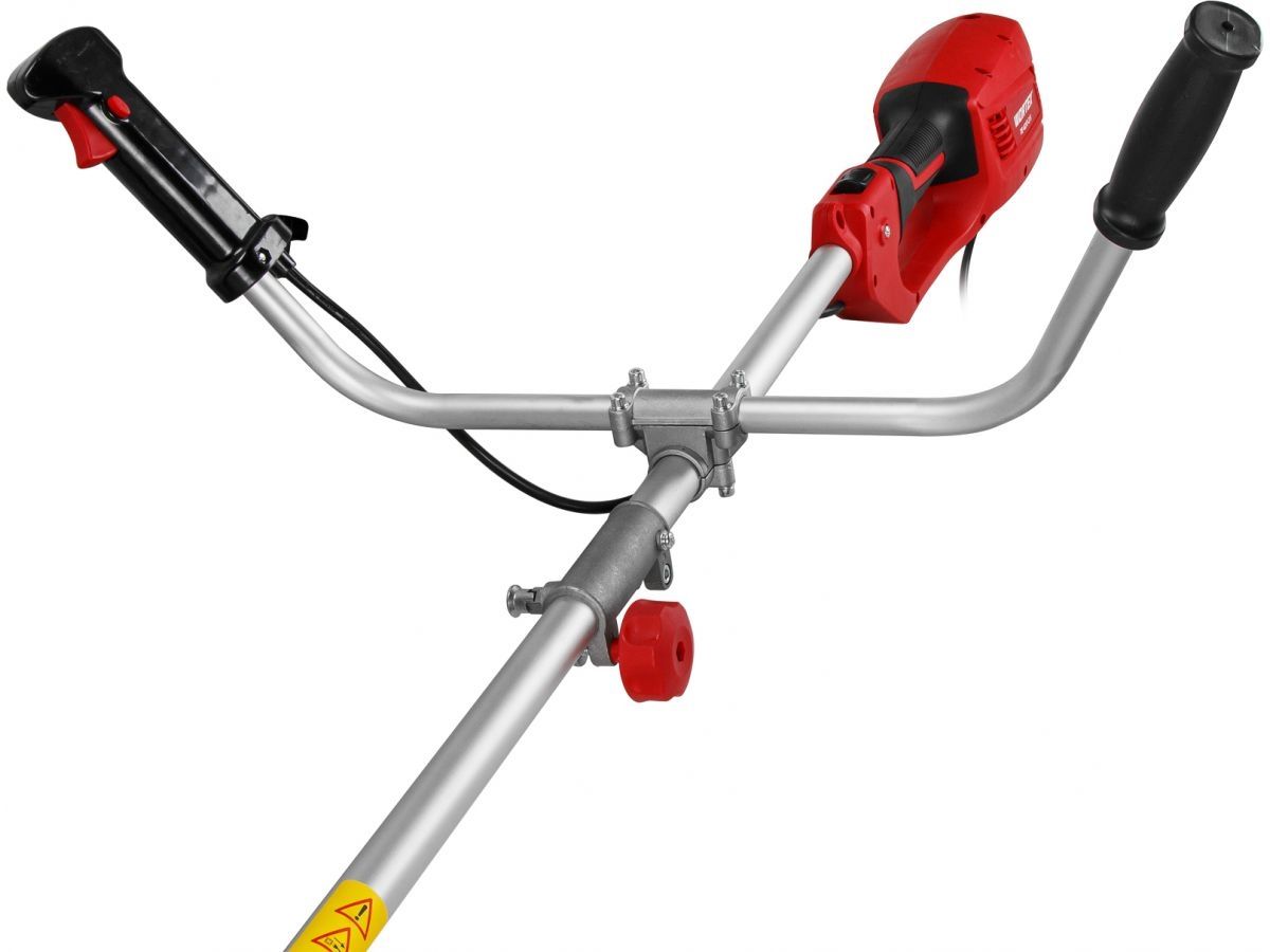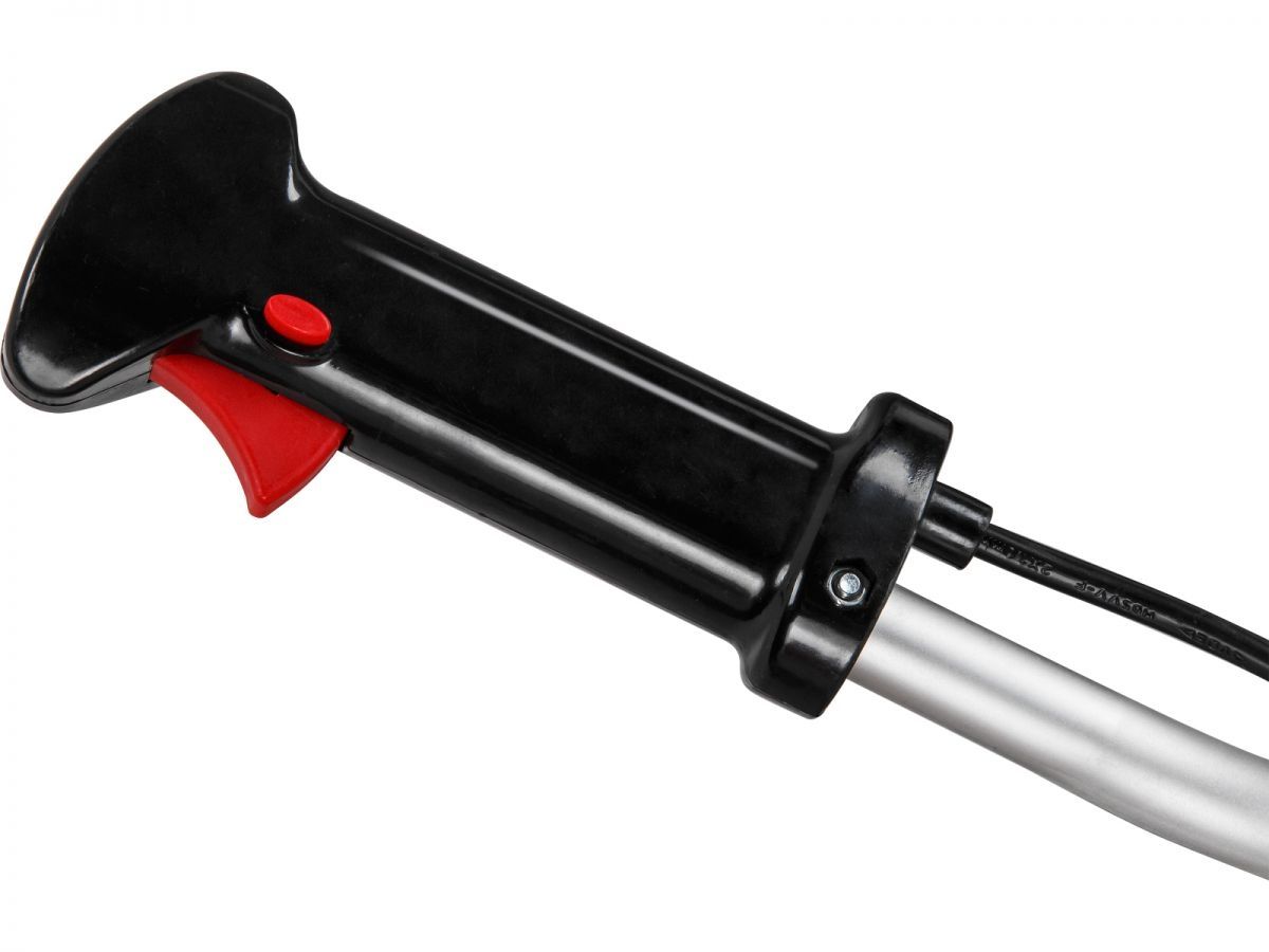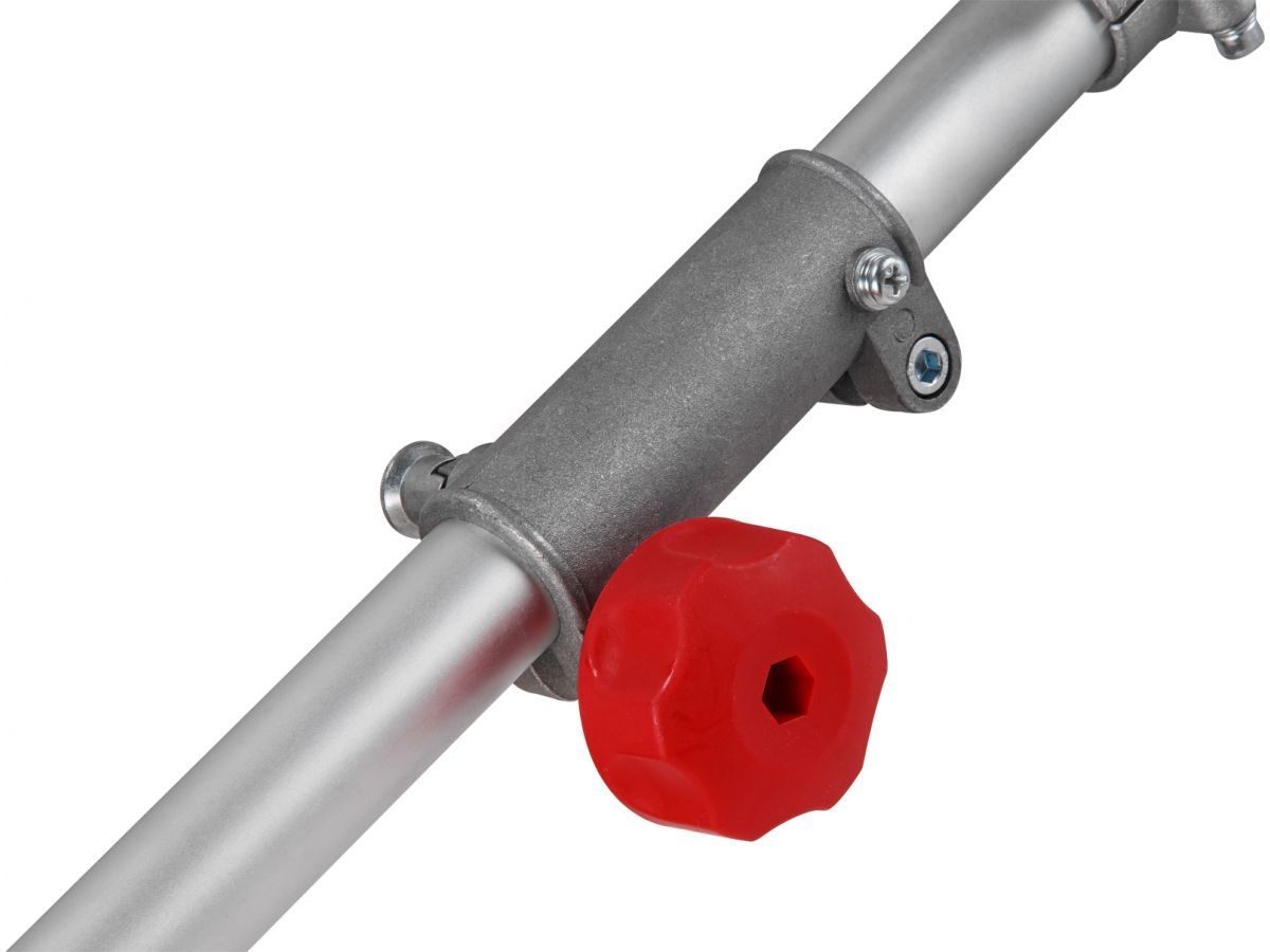 Велосипедная регулируемая рукоятка обеспечивает надежную фиксацию инструмента в руках и упрощает манипуляцию триммером.