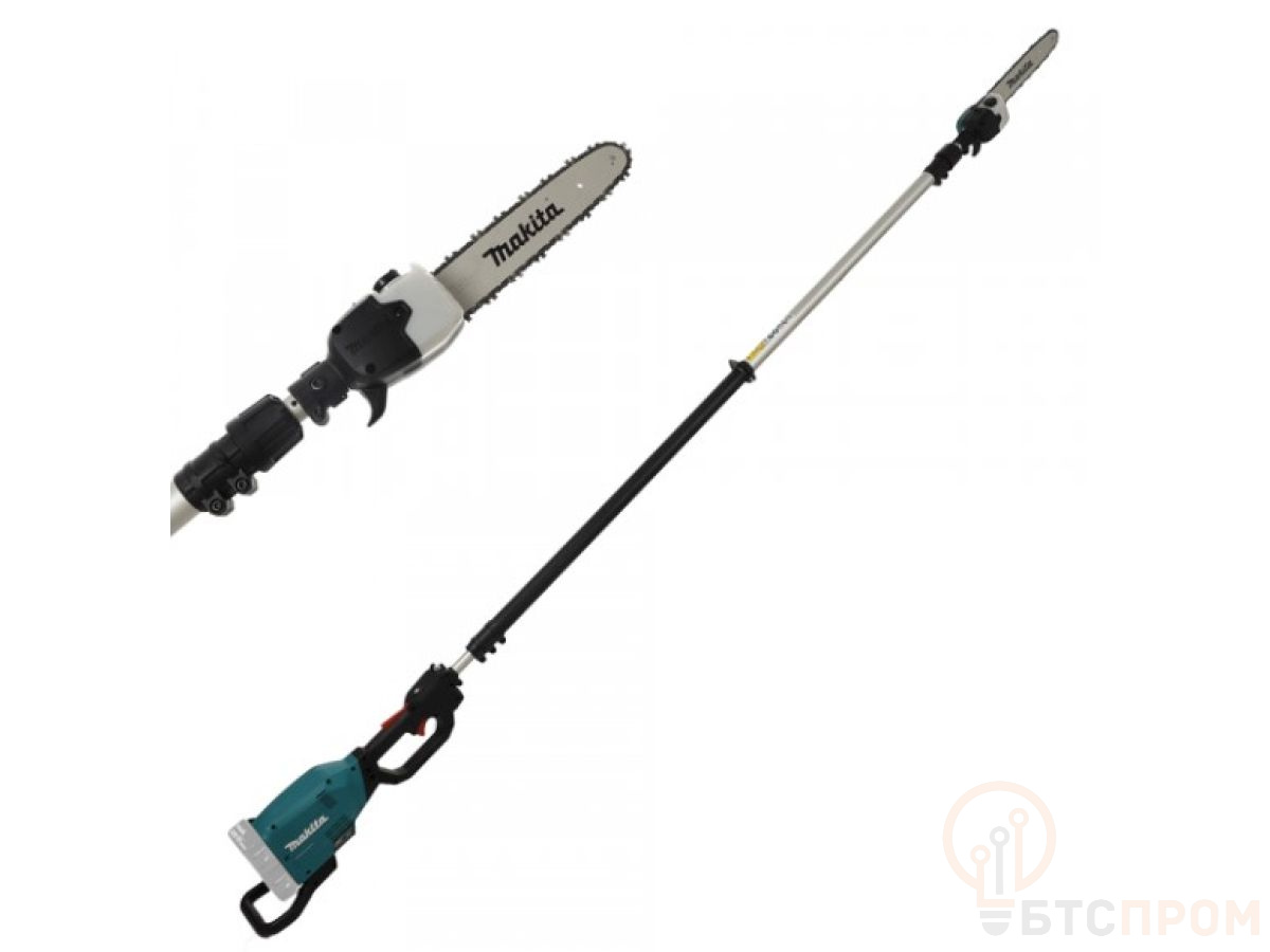 Цепная пила с телескопической штангой и мощным бесщеточным двигателем. С помощью данного агрегата удобно обрезать ветки деревьев на высоте до 4 метров. Бесступенчатая регулировка скорости.