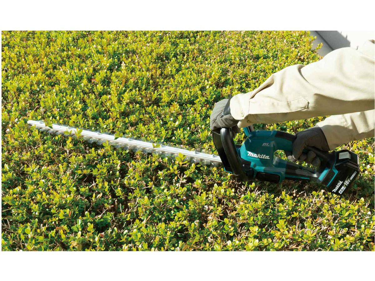 Аккумуляторный кусторез DUH606Z Makita - инструмент для формирования живой изгороди. Дизайн был переработан как снаружи, так и внутри. Ножницы оснащены бесщеточным двигателем, обеспечивающим более высокую производительность. Новая форма П-образной рукоятки обеспечивает удобный хват и позволяет комфортно нажимать кнопку под разными углами. Размер основного выключателя был увеличен для лучшего хвата и быстрого включения. Технология XPT позволяет использовать ножницы даже в дождь. Преимущества: