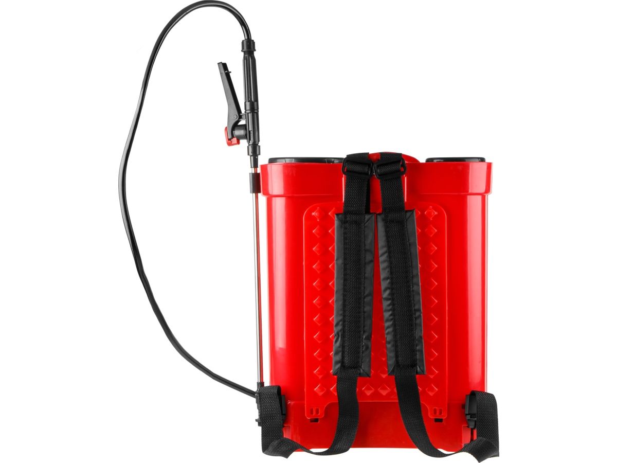 Вместительный бак из прочного пластика объемом 16 л позволяет эффективно бороться с садовыми вредителями.