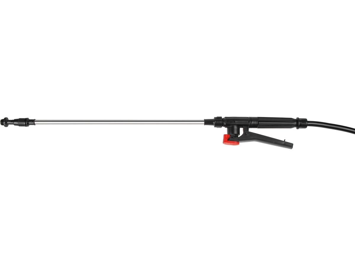 Шланг длиной 1,1 м позволяет распылять жидкости на расстояние до 5 м. Максимальная производительность: 3,1 лмин.