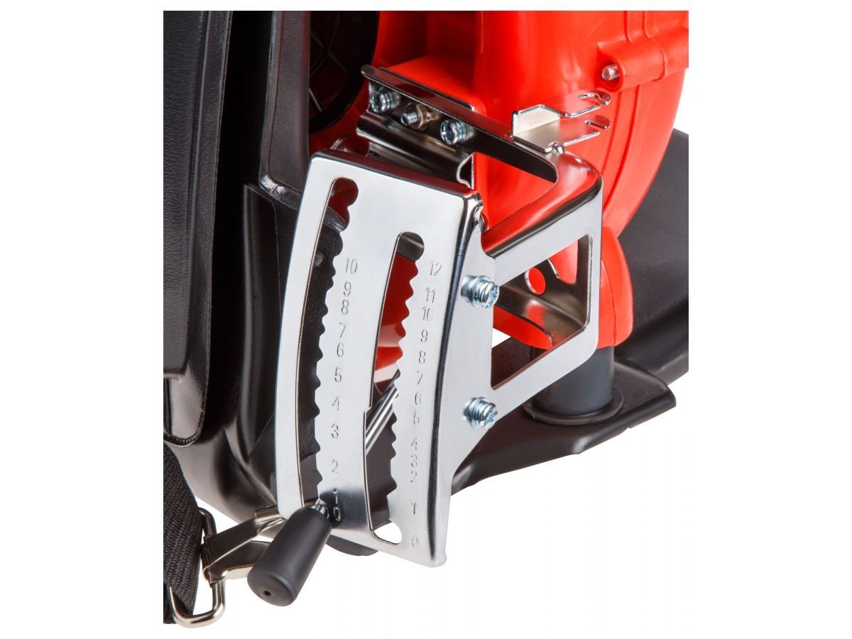 Устройство оснащено мощным бензиновым двигателем 2.1 кВт, поэтому обеспечивает мобильность, с ним можно работать в поле и саду, не привязываясь к наличию розетки и электросети.