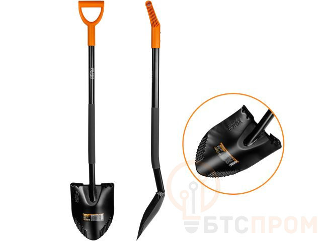 Наличие рукояти: D-образная, расположенная к черенку под углом 17 градусов, гарантирует руке удобный и естественный хват;