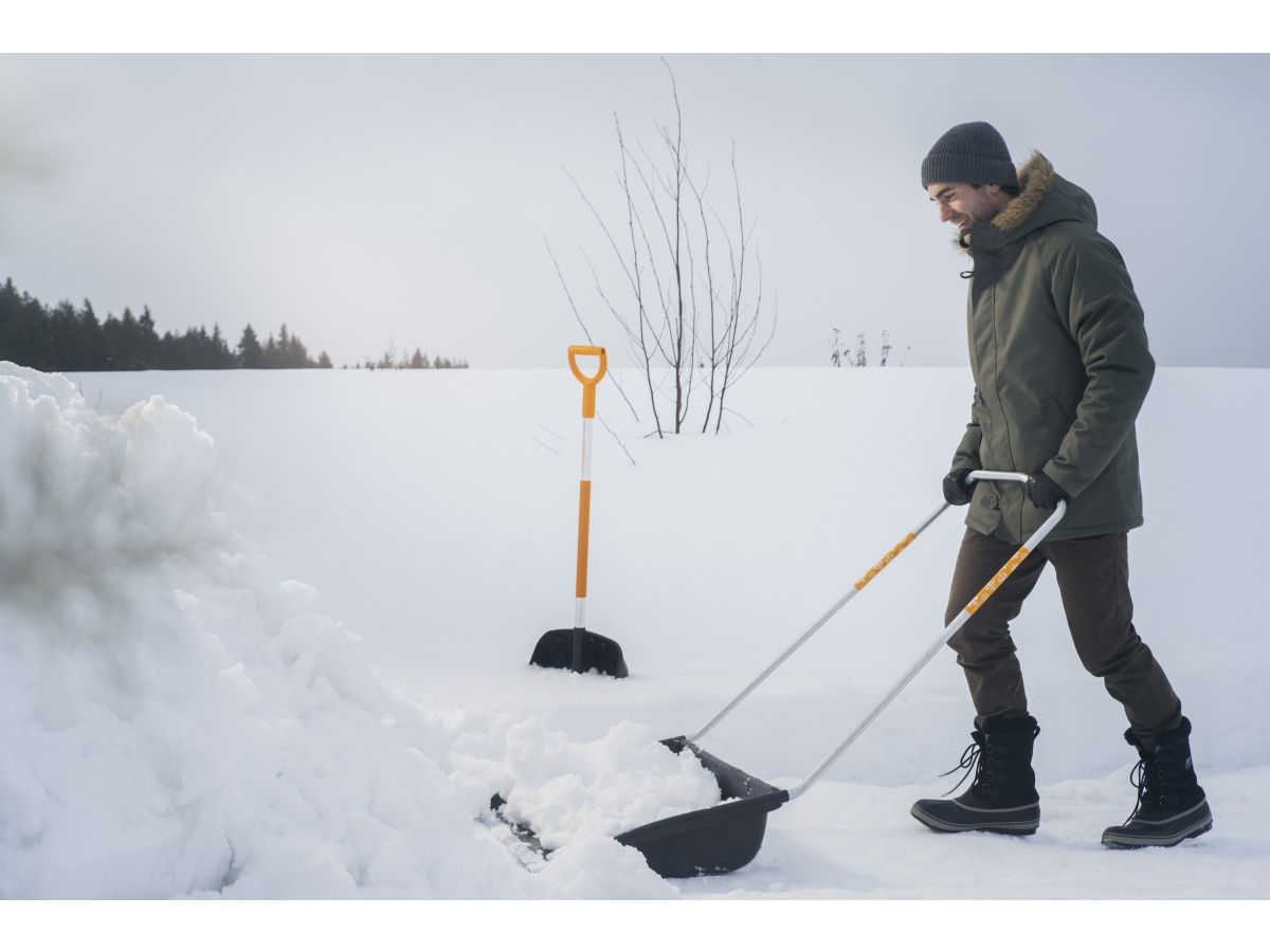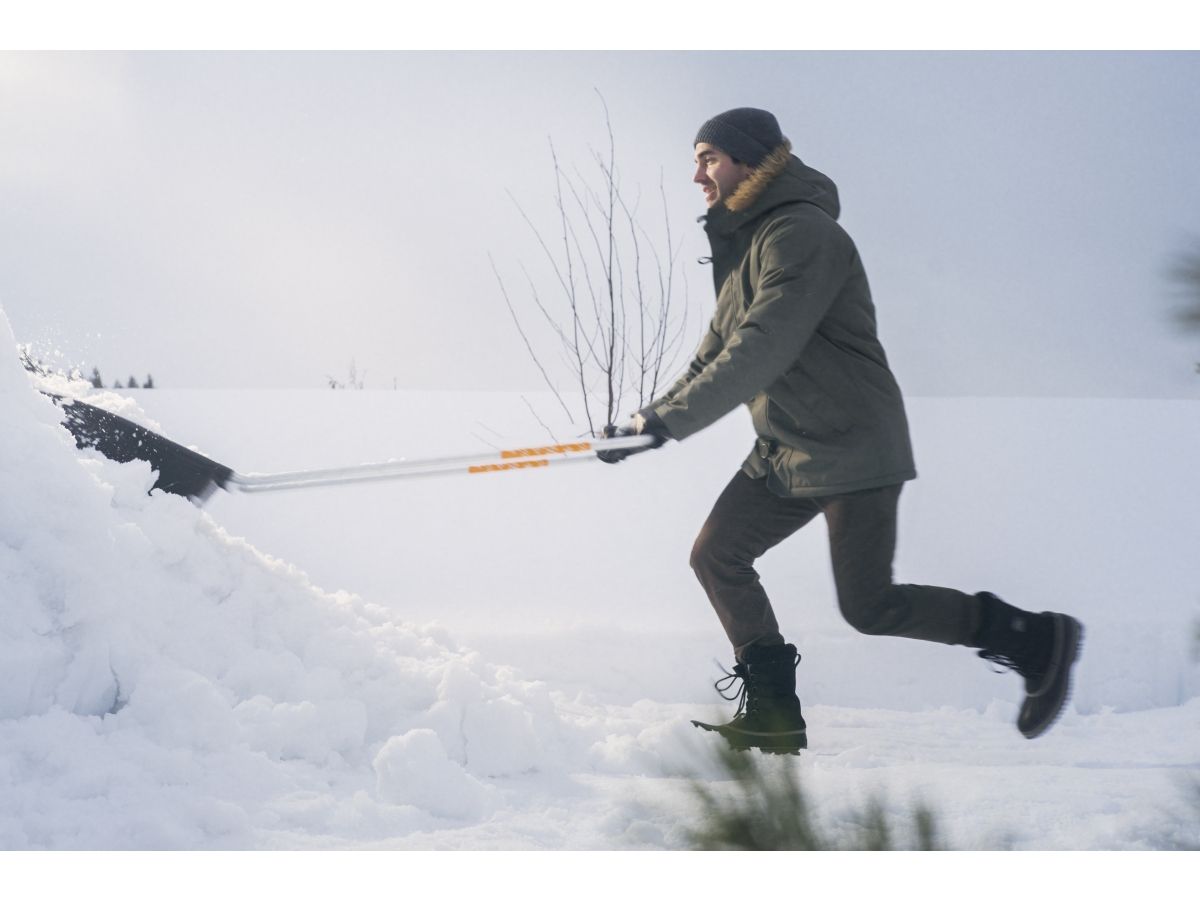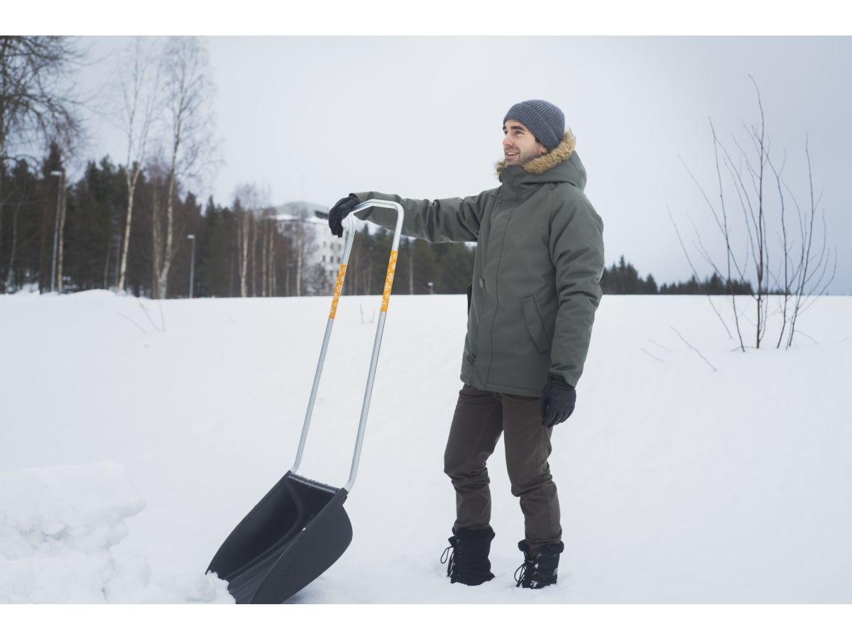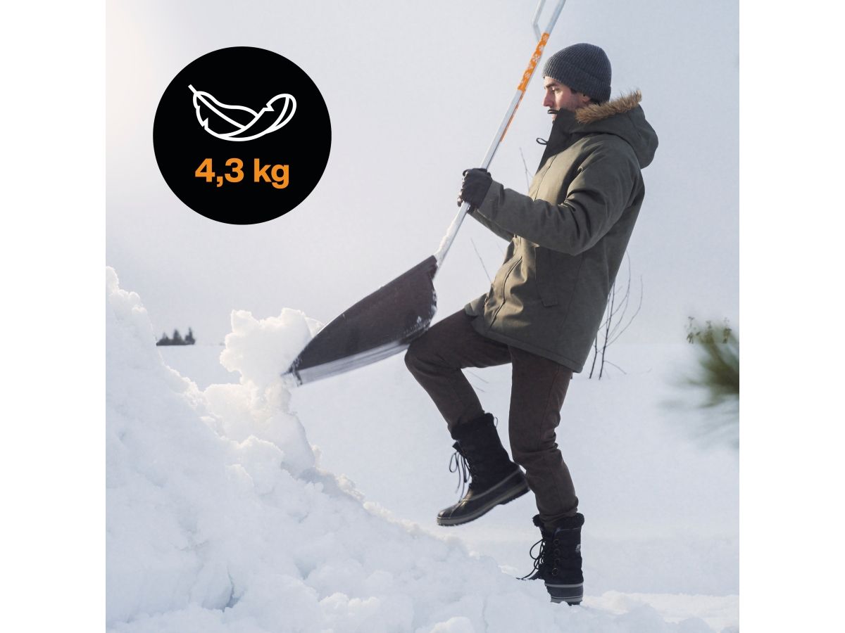 Длинная рукоятка из стальной трубы для эффективной работы. Оранжевый отражатель на рукоятке для безопасной работы в темное время суток