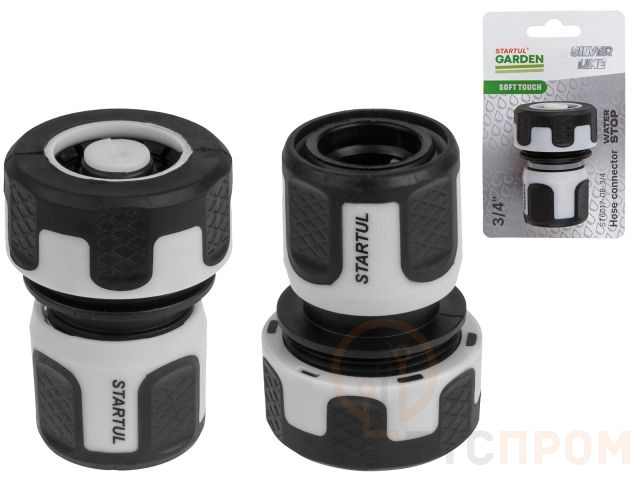 Муфта быстросъемная 3/4" с автостоп. STARTUL GARDEN (ST6017-08-3/4) (soft touch, двухкомпонентная, SILVER LINE) ST6017-08-3/4