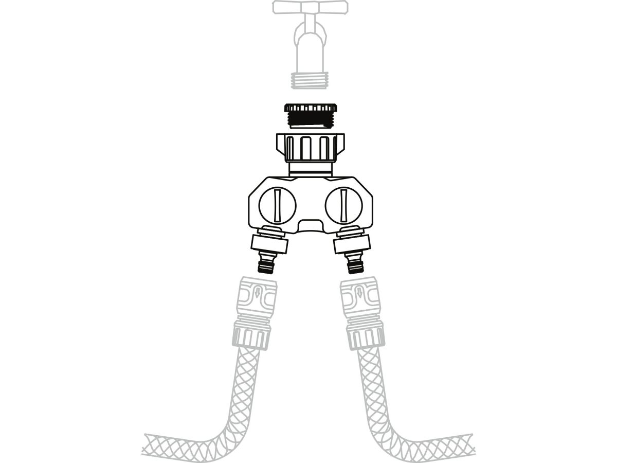 Назначение: для подключения поливочных шлангов к водопроводной трубе или крану с внешней резьбой 3/4" или 1". Разделяет входящий поток воды на 2 выхода с возможностью перекрытия каждого потока. Поливочные шланги соединяются при помощи муфт быстросъемных;