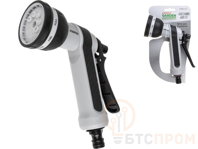Назначение: предназначен для полива на дачных участках, в садах, парках и скверах. Противоскользящее покрытие ручки. Фиксирующий курок для длительного полива. 8 режимов полива;