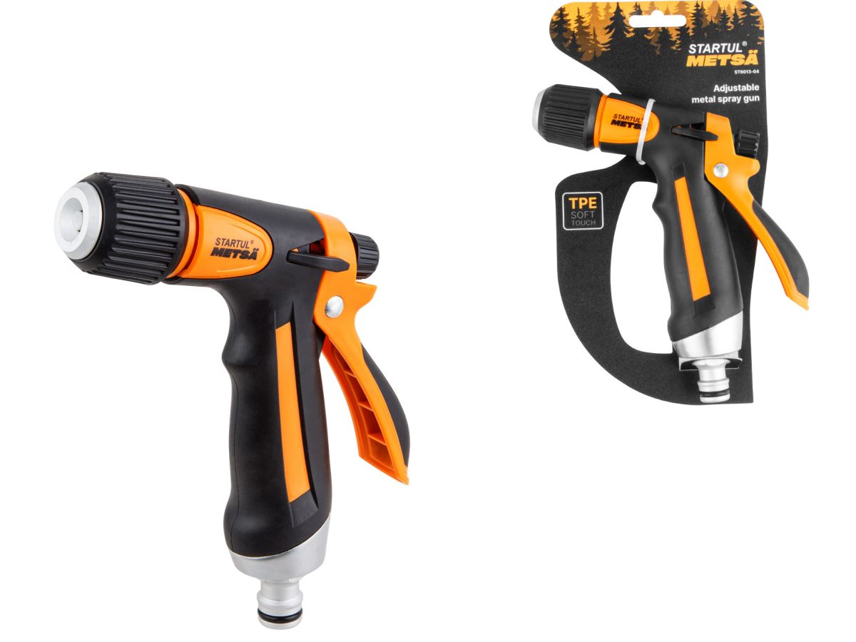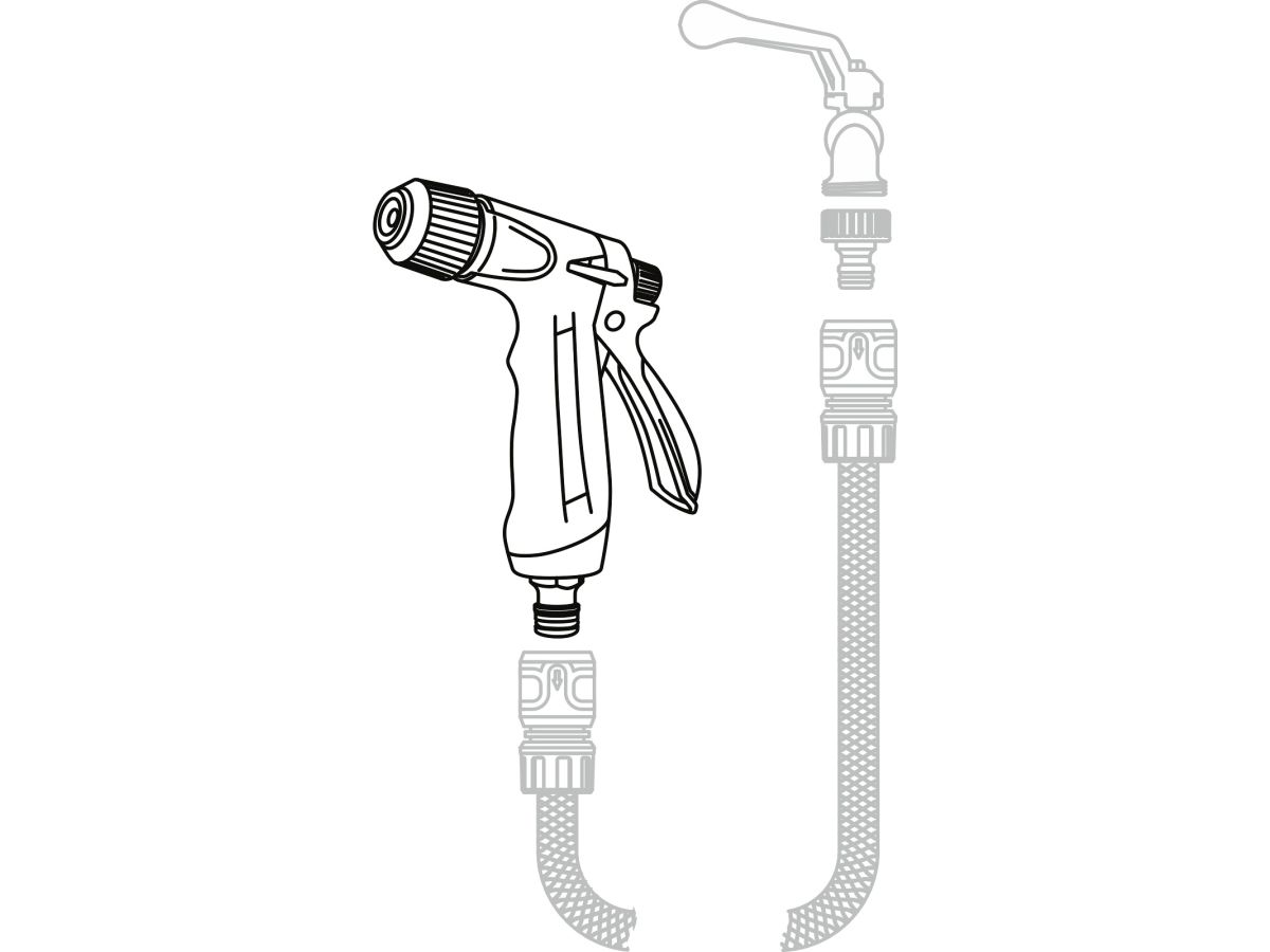 Назначение: для полива на дачных участках, в садах, парках и скверах. Конструкция пистолета выполнена из металла и пластика, благодаря чему отличается прочностью и устойчивостью к механическим повреждениям. Противоскользящее покрытие из термопластичного эластомера (TPE) обладает повышенной износостойкостью, мягкостью и устойчивостью к воздействию внешней среды. Фиксирующий курок для длительного полива;