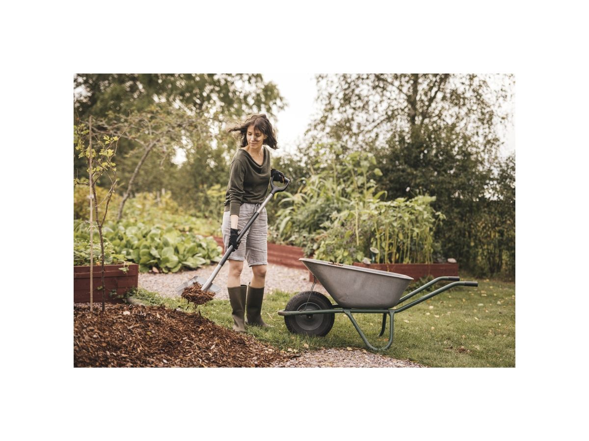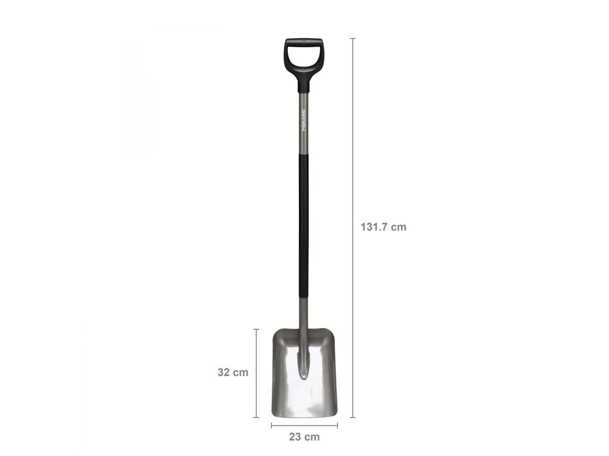 Сварной переход между лезвием и древком придает лопате жесткость, благодаря которой она прослужит долгие годы работы в саду.