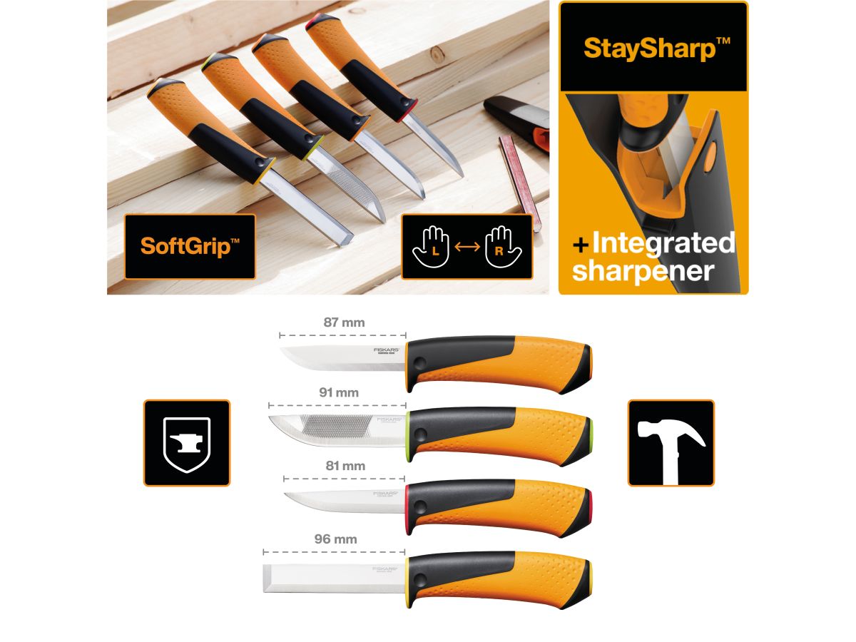 Столярный нож Fiskars с точилкой универсальный нож из высококачественной стали с более прочным и толстым лезвием для общего применения.