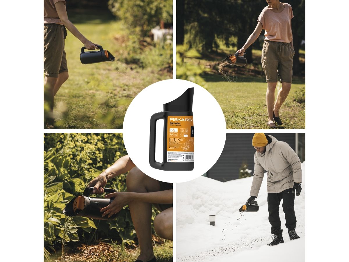 Легкая посадка. Сейте различные семена, удобряйте растения и посыпайте дорожки зимой солью с помощью разбрасывателя Solid. Заполните емкость семенами, наденьте крышку, выберите желаемую форму ячеек, закрутите и сейте.