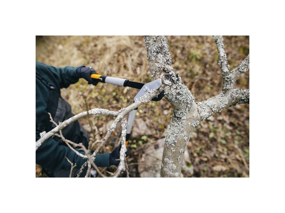 Сучкорез FISKARS LX94 PowerGear X средний (1020187) подходит для подрезки свежих веток диаметром до 50 мм. Лезвия из закаленной стали остаются острыми длительное время. Антифрикционное покрытие верхнего лезвия обеспечивает чистый срез и препятствует образованию коррозии. Зубчатый механизм из стали гарантирует максимальную мощность инструмента и увеличивает режущую силу в 3 раза по сравнению со стандартными конструкциями Fiskars.