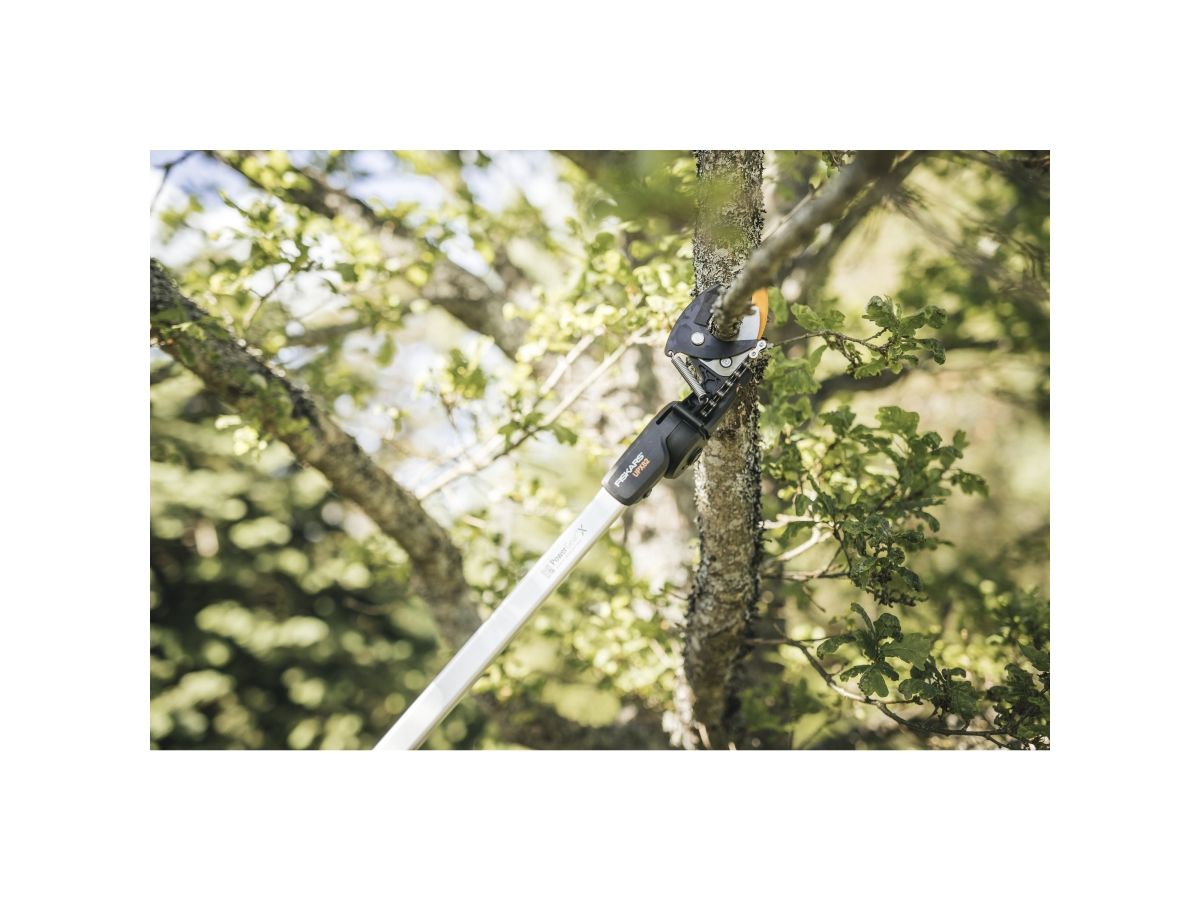 Универсальные сучкорезы Fiskars сконструированы таким образом, чтобы доставать как низко, так и высоко расположенные ветви.