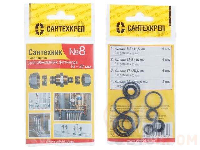 Набор прокладок "Сантехник №8" (Набор уплотнительных колец для металлопластиковых фитингов) (Сантехкреп) УТZ00012638