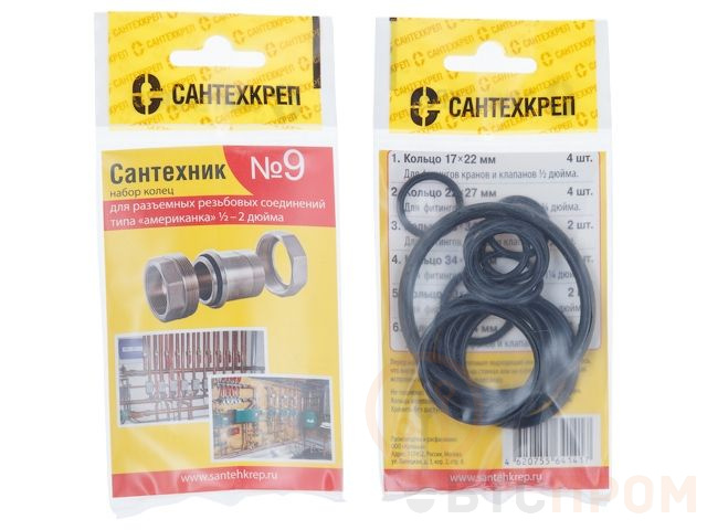 Набор прокладок "Сантехник №9" (Набор колец для разъемных резьбовых соединений типа "американка") (Сантехкреп) УТZ00012639
