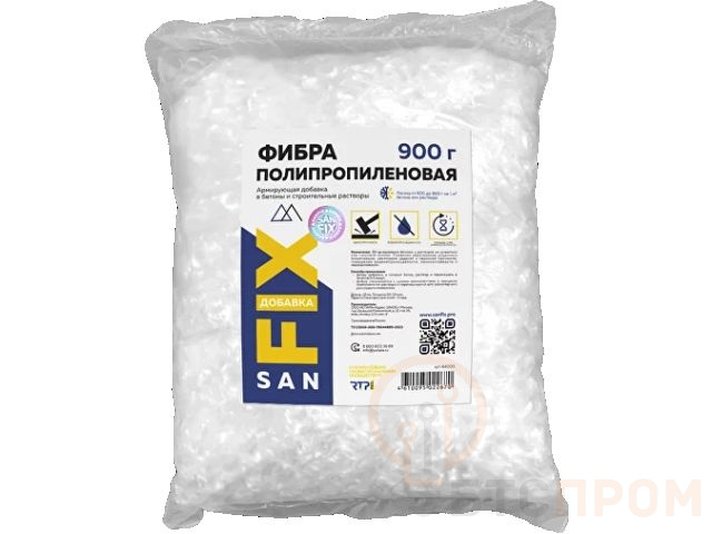 –Фибра (армирующая добавка в бетоны и строительные растворы) полипропиленовая 900 г., SANFIX 44005