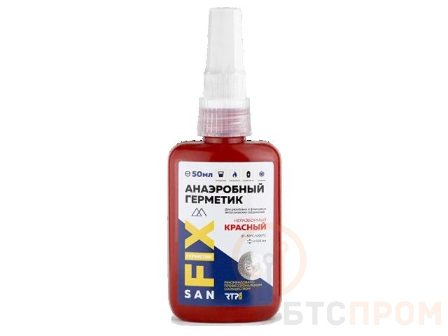 Герметик анаэробный неразборный, высокой прочности, низко-средней вязкости 50 мл., красный, SANFIX 40746