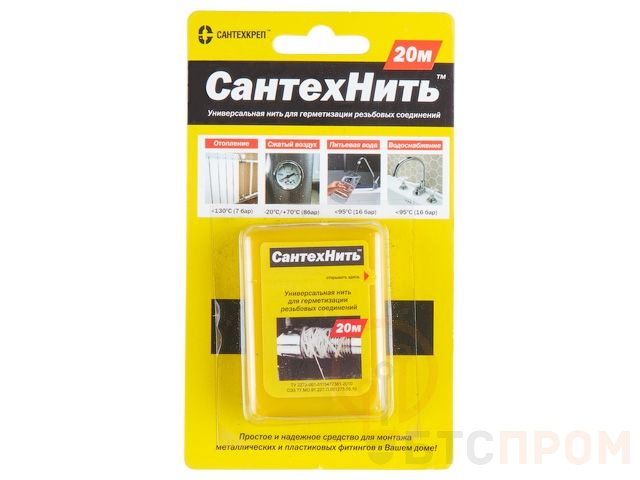 Нить для герметизации резьбовых соединений 20 м СантехНить (Нить для герметизации резьбы «СантехНить» (20 м)) (Сантехкреп) 5-0034