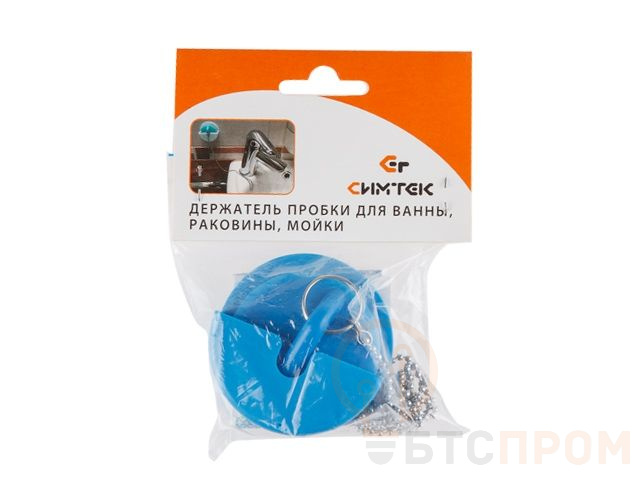 Пробка для ванны (набор), голубой (держатель для пробки - 1шт.,+ пробка с метал. цепочкой - 1шт.) (Симтек) 5-0063