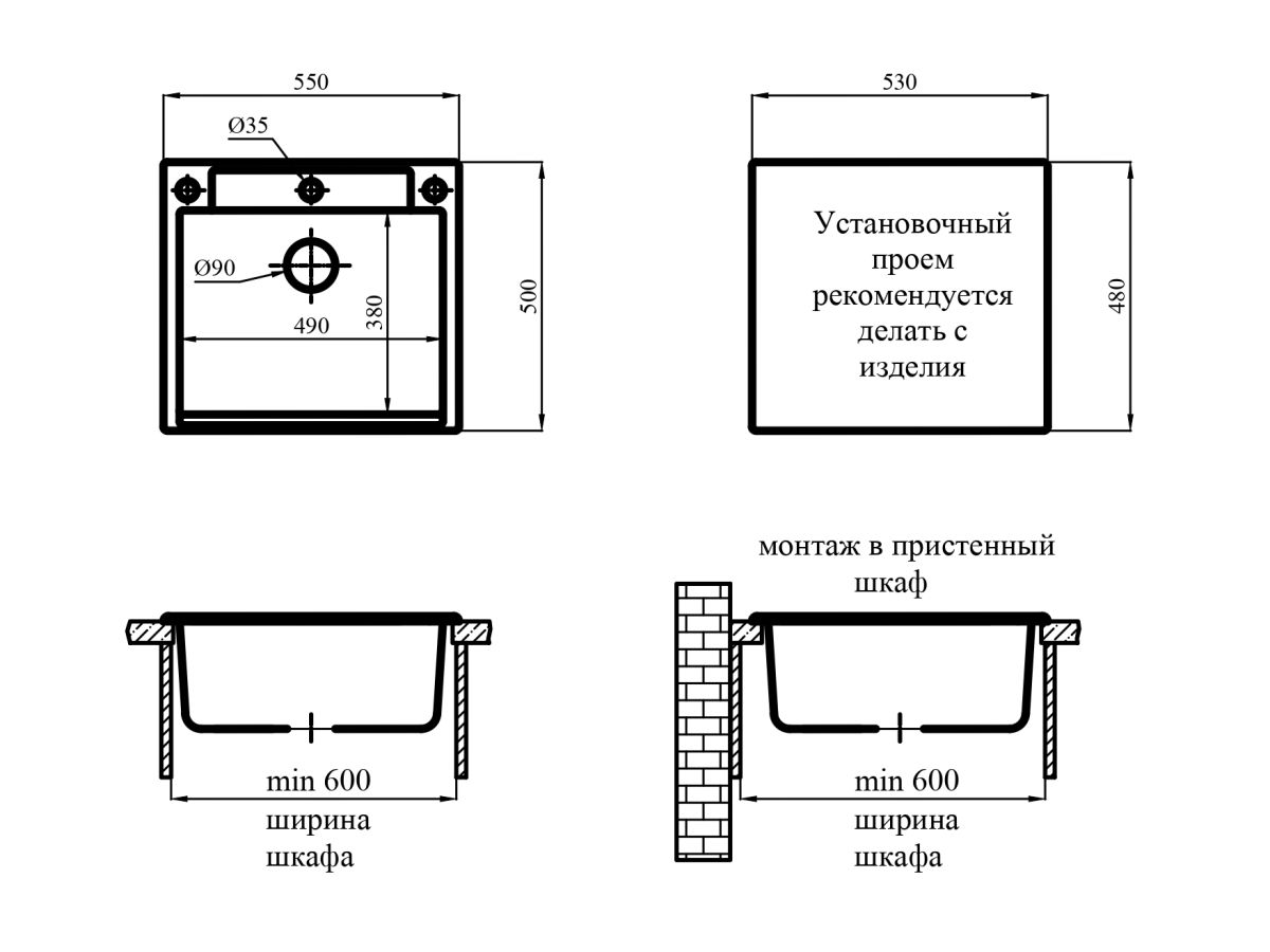 Размер мойки: 550х500мм;
