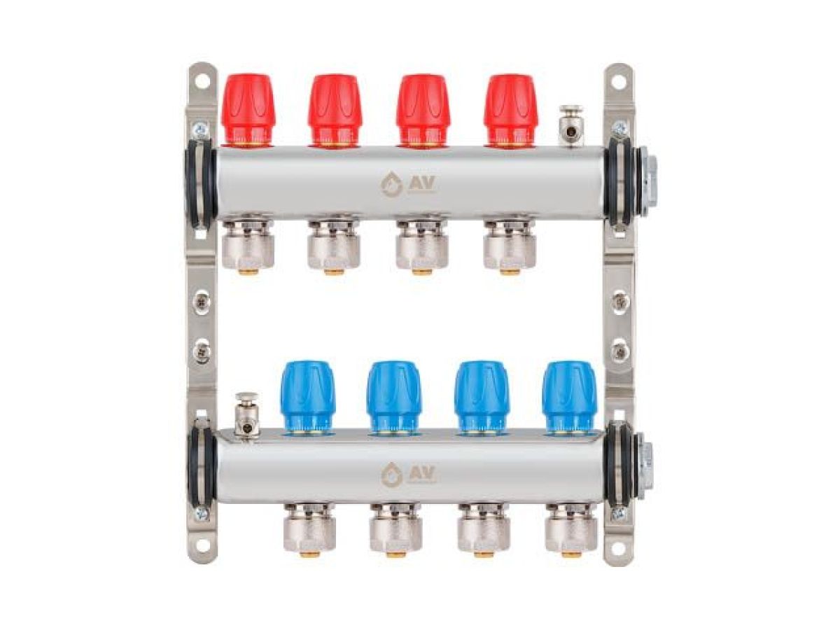 Коллекторная группа AVE135, 4 вых. AV Engineering (Для водоснабжения и отопления (радиаторы). Не для теплого пола) AVE13500104