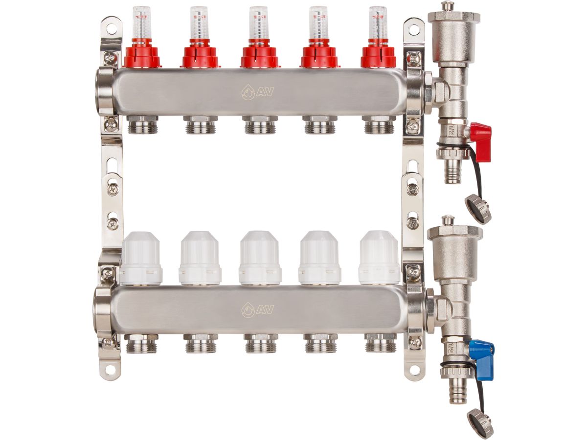 Коллекторная группа AVE136, 5 вых., AV Engineering (Для теплого пола и водоснабжения) AVE13600105Kplus