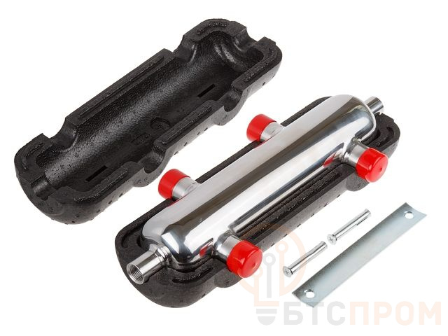 Устройство представляет собой комбинированный воздухо-газоотделитель с функцией гидравлического разделения контуров котла и потребителей.