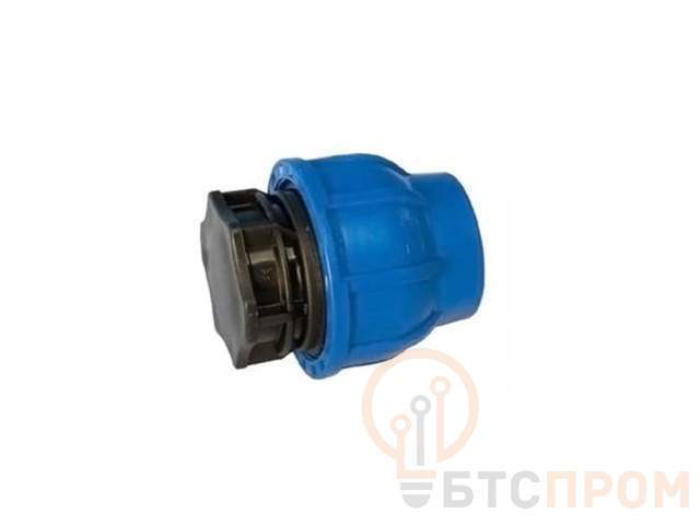 Заглушка компрессионная концевая для труб ПНД (полиэтилена низкого давления). Монтаж системы технического трубопровода либо трубопровода для питьевой воды довольно простой. Труба ПНД вставляется через втулку запрессовывающую диаметром 50 мм в компрессионную заглушку, фиксируется накидным кольцом, гайка плотно закручивается. Для того, чтобы система была герметична, для защиты системы от протекания, используется уплотнительное кольцо.