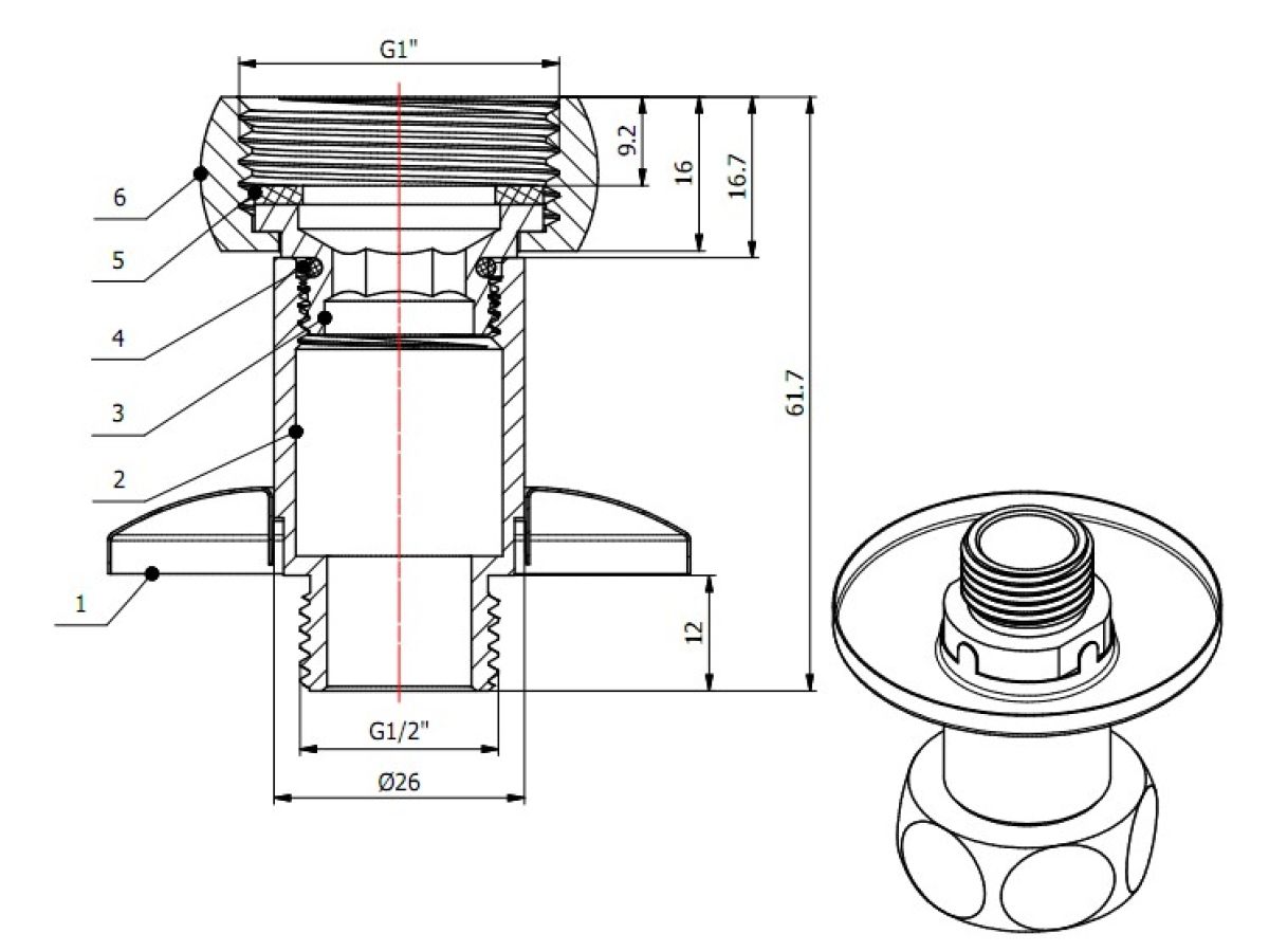 Американка прямая 1" вн. х 1/2" нар. ХРОМ, AV Engineering (2 шт. в уп.) (для полотенцесушителя, макс. 70 С, макс. 16 бар) AVE156003-1