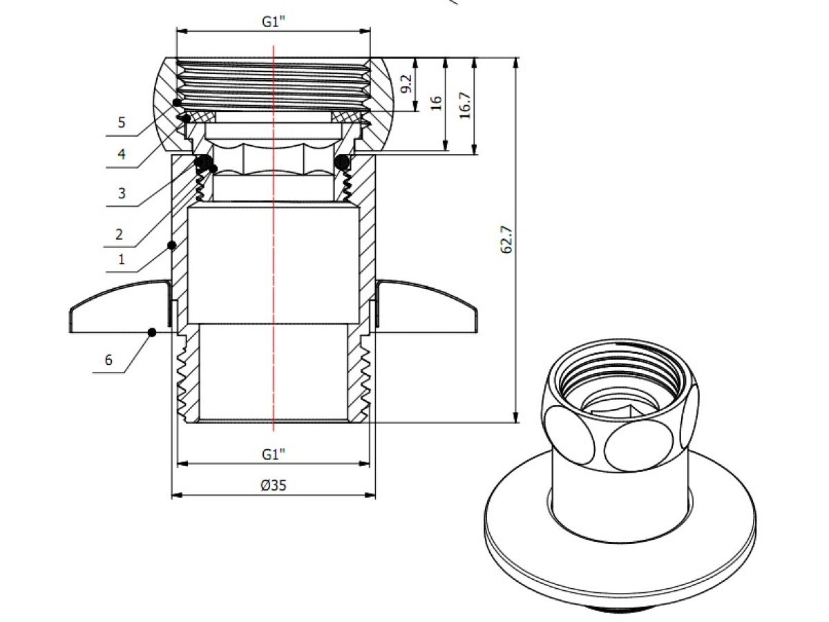 Американка прямая 1" вн.-нар. ХРОМ, AV Engineering (2 шт. в уп.) (для полотенцесушителя, макс. 70 С, макс. 16 бар) AVE156005-1