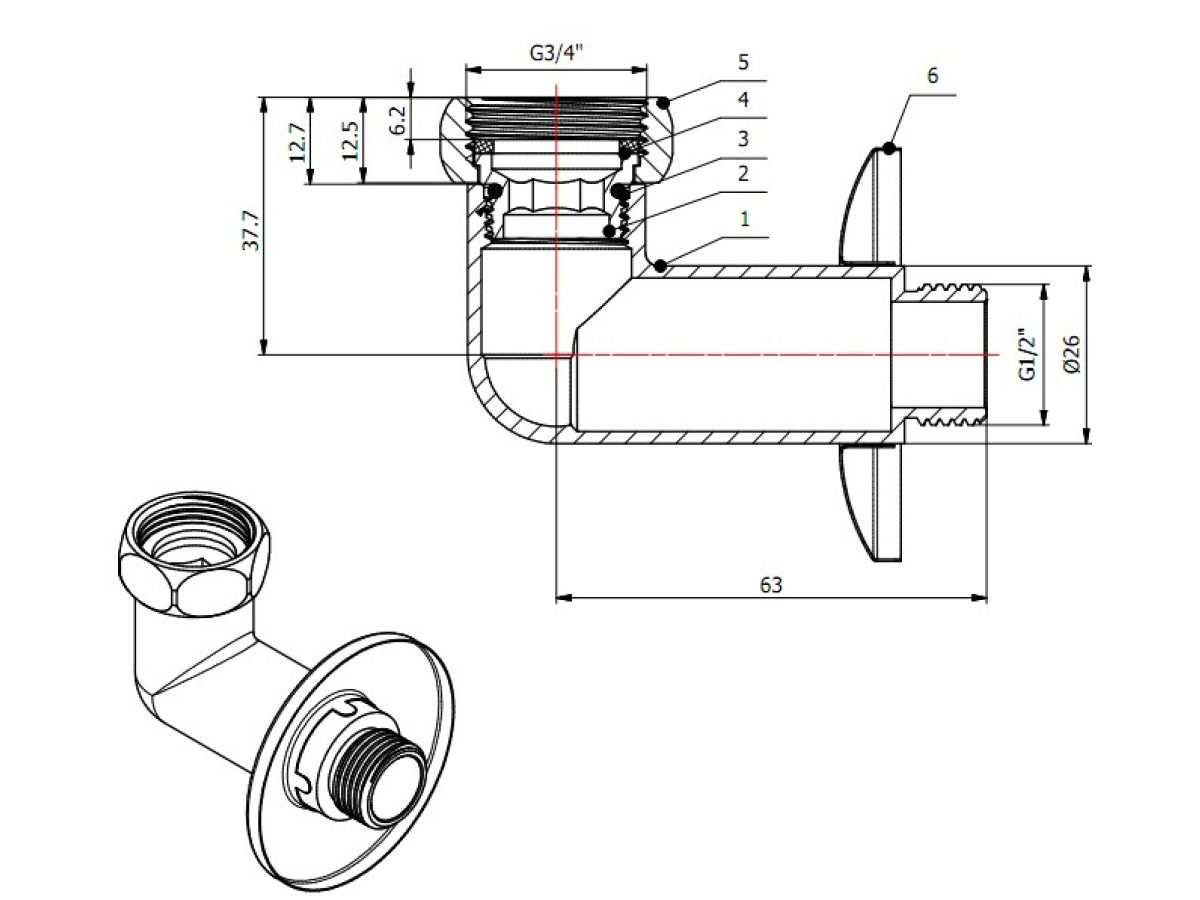 Американка угловая 3/4" вн. х 1/2" нар. ХРОМ, AV Engineering (2 шт. в уп.) (для полотенцесушителя, макс. 70 С, макс. 16 бар) AVE156007-1