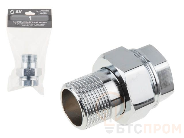 Американка прямая 1" вн.-нар. ХРОМ, AV Engineering (инд. упак.) (с уплотнительным кольцом) AVE308006