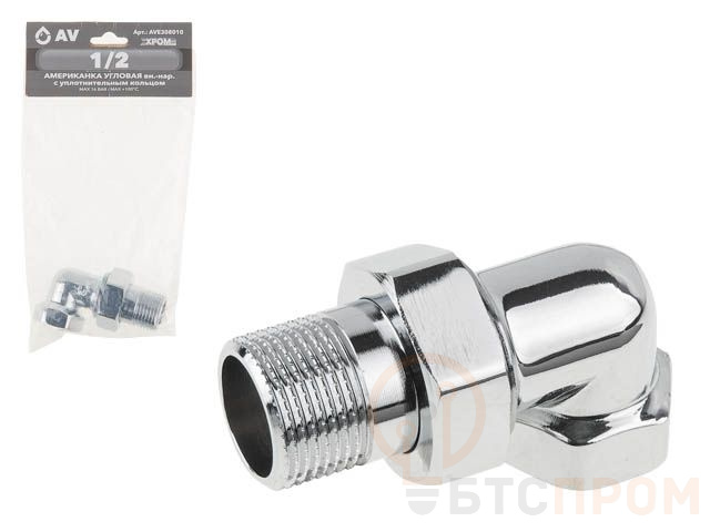 Американка угловая 1/2" вн.-нар. ХРОМ, AV Engineering (инд. упак.) (с уплотнительным кольцом) AVE308010