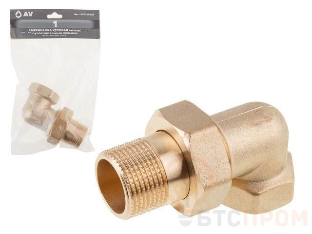 Американка угловая 1" вн.-нар., AV Engineering (инд. упак.) (с уплотнительным кольцом) AVE308009 фото в каталоге от BTSprom.by