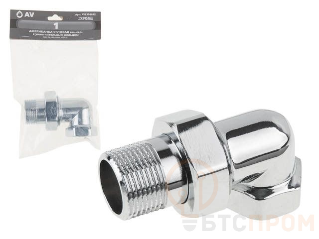 Американка угловая 1" вн.-нар. ХРОМ, AV Engineering (инд. упак.) (с уплотнительным кольцом) AVE308012