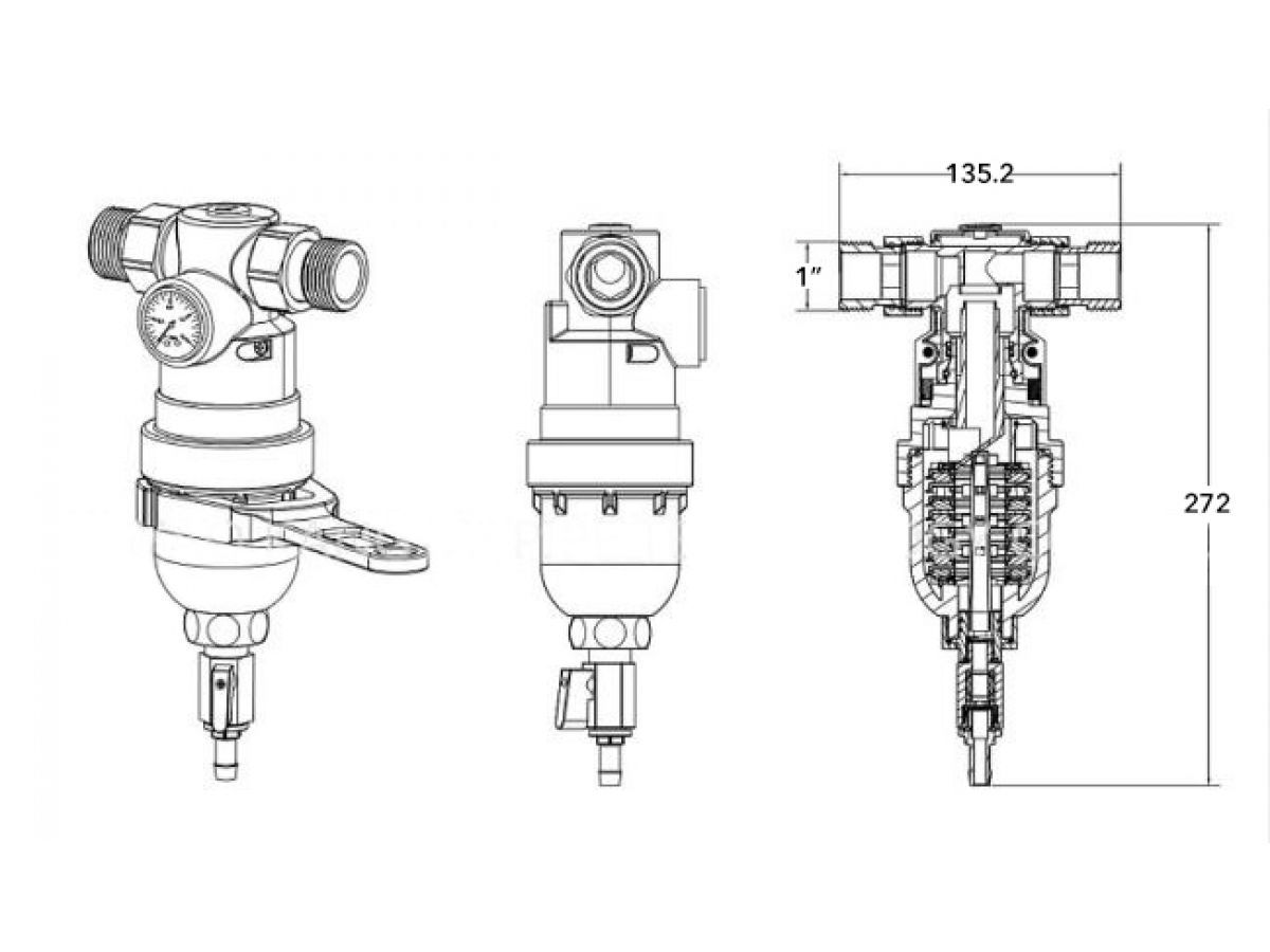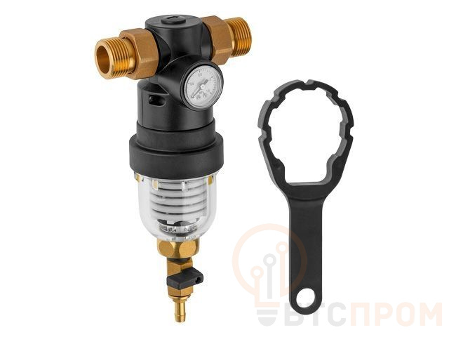Фильтр самоочищающийся 1" нар., с манометром, AV Engineering (инд. упак.) (промывной латунный, фильтр разборный, ступенчатый) AVE115705KG